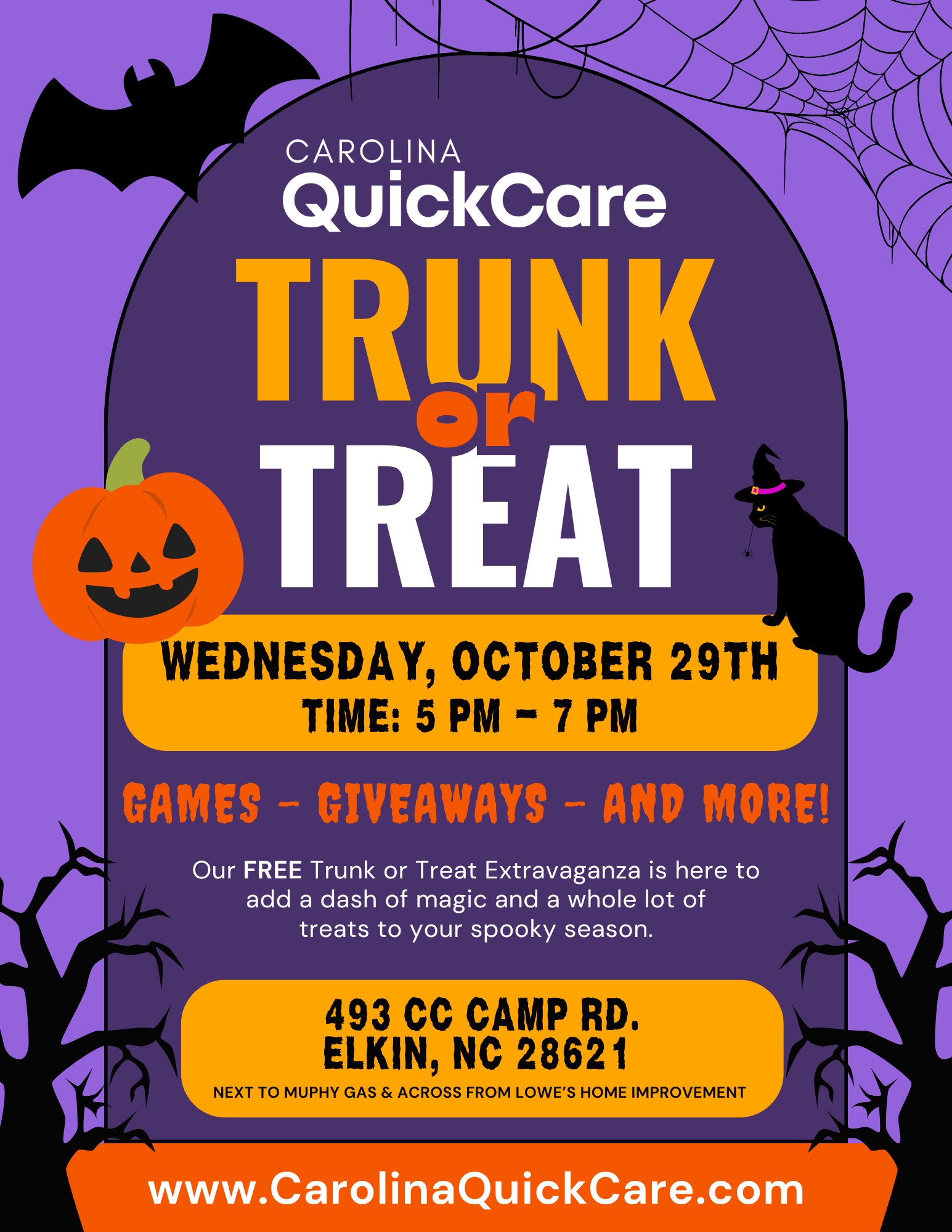 Carolina QuickCare Elkin is located along the NC 268 Bypass, next to the Murphy USA Gas Station and across the street from Lowe’s Home Improvement. Get directions here.